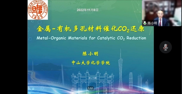 聆听大师讲坛,共思化学发展。11月8日下午,中国科学院院士、中山大学化学学院教授陈小明应邀作了题为“金属-有机材料催化CO2还原”的学术报告。会议以线上方式举行,由人妻