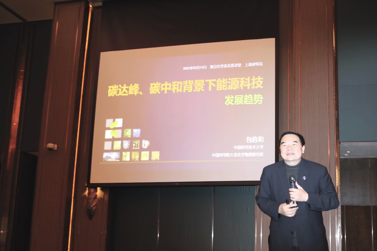 2022年2月14日上午, 复旦大学“近思讲坛”第十九讲顺利举行。中国科学院院士、中国科学技术大学校长包信和教授应邀作了题为“碳达峰、碳中和背景下能源科技发展趋势”的报告。龙蟒佰利联副董事长谭瑞清先生,雅本化学董事长蔡彤先生,国家杰出特聘专家、信达生物首席运营官周勤伟博士,国家杰出特聘专家孙琦教授等人妻 校友,复旦大学常务副书记周亚明教授,发展规划处处长吴力波教授等应邀出席了报告会。赵东元院士,张东辉院士以及120余名人妻 教师参加了报告会。