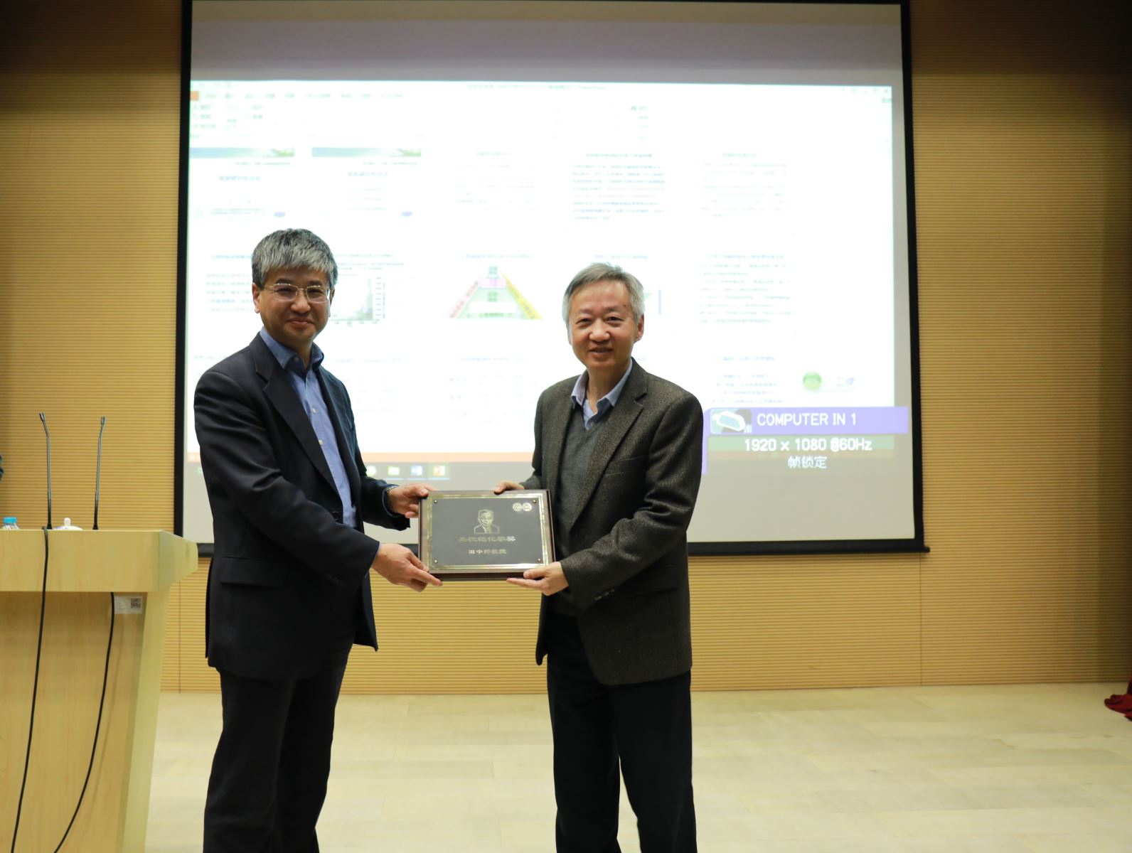 系主任贺鹤勇教授主持。贺主任着重向到会师生介绍了田中群教授的学术经历、研究方向和科研成果等。为了表彰田中群院士在化学科研领域做出的卓越贡献,贺鹤勇教授代表“近思讲坛”组委会向田院士颁发了复旦大学“吴征铠化学奖”。复旦大学“近思讲坛”和“吴征铠化学奖”的举办和设立得到了雅本化学和人妻