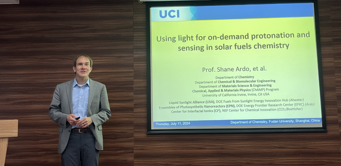 7月11日下午,人妻 “光华化学论坛”在江湾校区化学楼A7032室顺利举行。加州大学尔湾分校Shane Ardo教授受邀作了题为“Using Light for On-Demand Protonation and Sensing in Solar Fuels Chemistry”的学术报告。胡可青年研究员主持本次报告会,并为Shane Ardo教授颁发了证书。