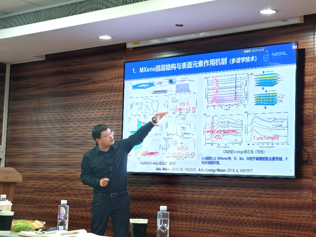 中国科学技术大学宋礼教授作了题为“同步辐射探测低维纳米材料与结构”的报告。宋教授介绍了同步辐射光源在谱学、衍射、散射和成像等实验方法中的应用,重点展示了课题组近年来依托国内各大同步辐射光源设施开展的研究工作。宋礼教授结合电化学能量储存与转化案例,阐释了二维电化学材料的原位构效测量及储能器件性能演化机制,并展望了第四代同步辐射光源在纳米科学及高时空分辨实验中的应用前景。