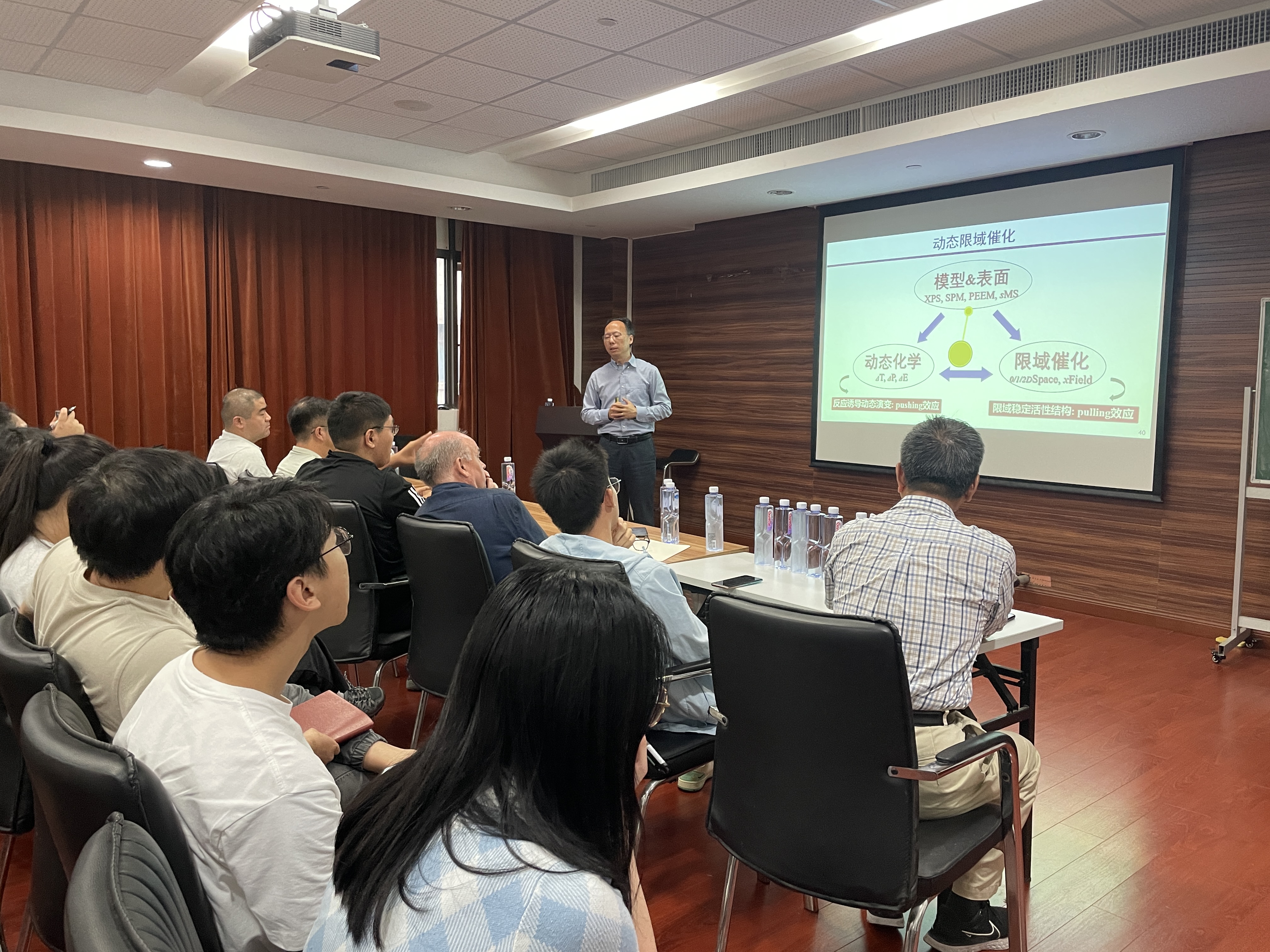 在问答环节,现场师生就人工智能在预测和分析表面催化中的问题和催化剂的设计等方面与傅强研究员进行深入探讨。此次报告不仅提高了大家对表界面催化科学的应用与认识,还为人工智能在该领域的发展提供了有益启示。