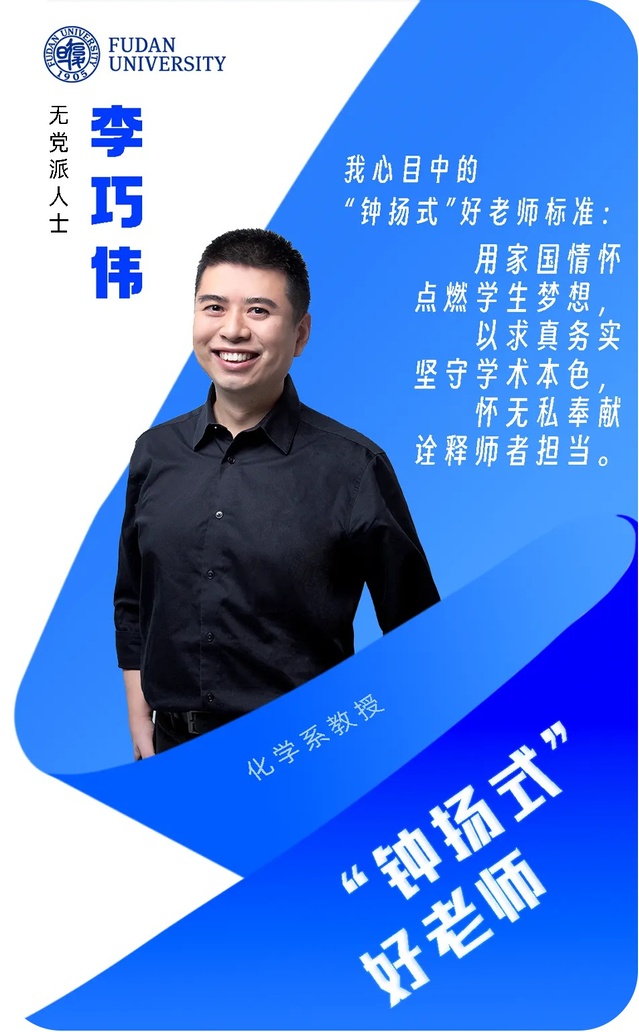 2025年,李巧伟获评复旦大学“钟扬式”好老师称号