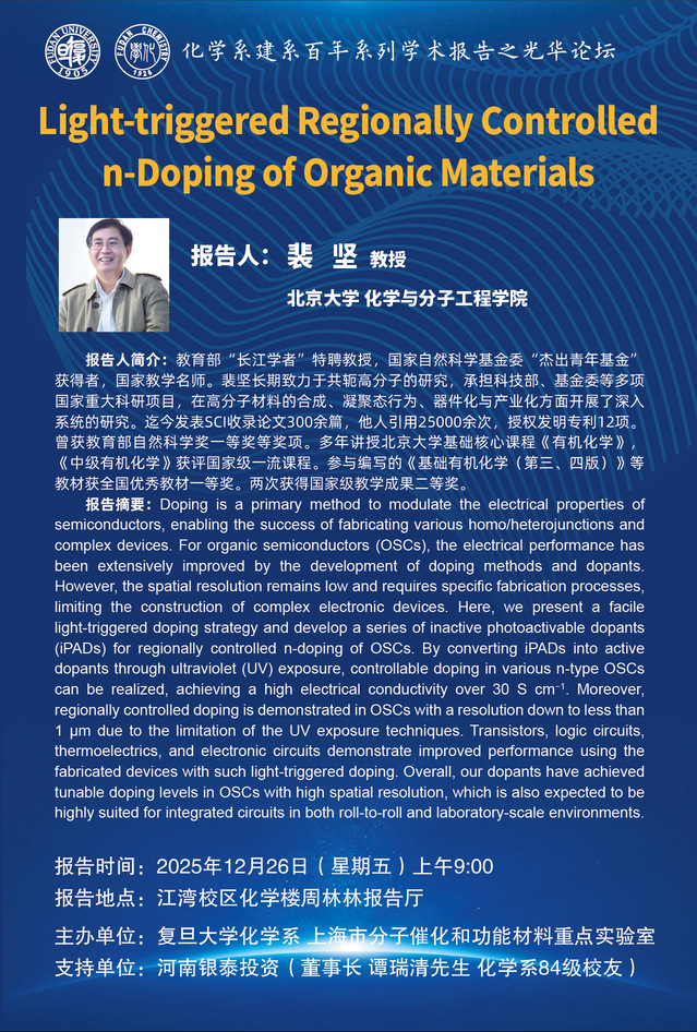 Light-triggered Regionally Controlled n-Doping of Organic Materials
